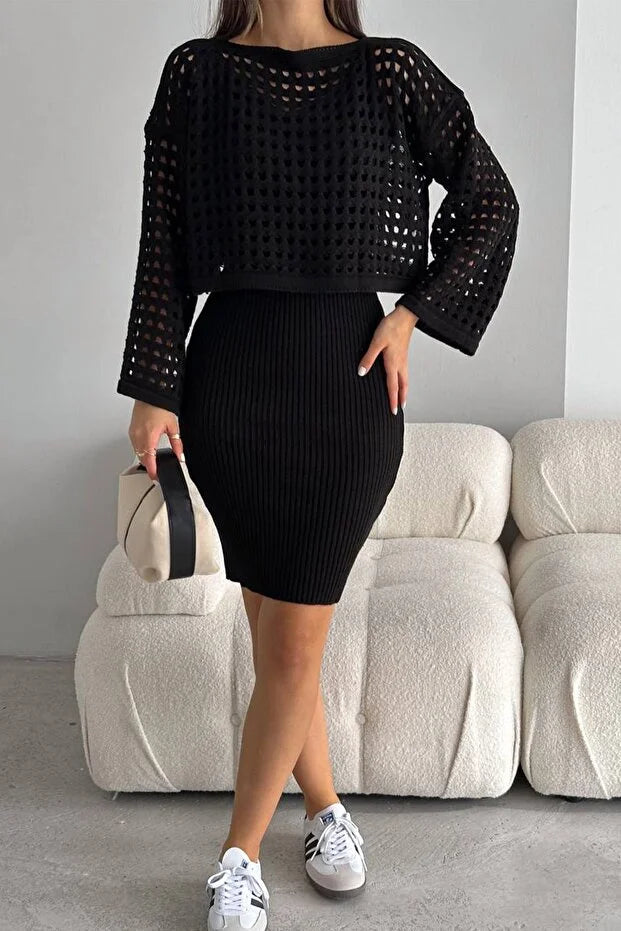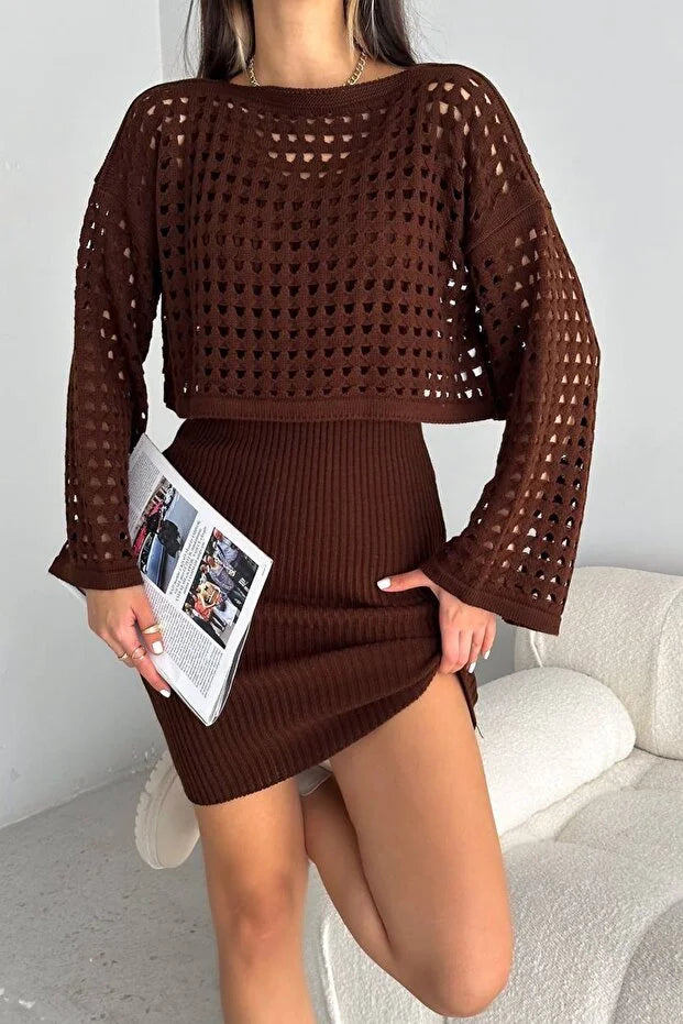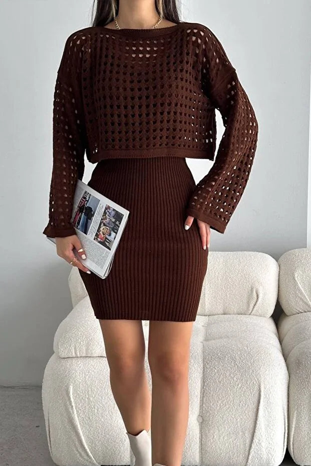 Delikli Elbise Alt Üst Takım Triko